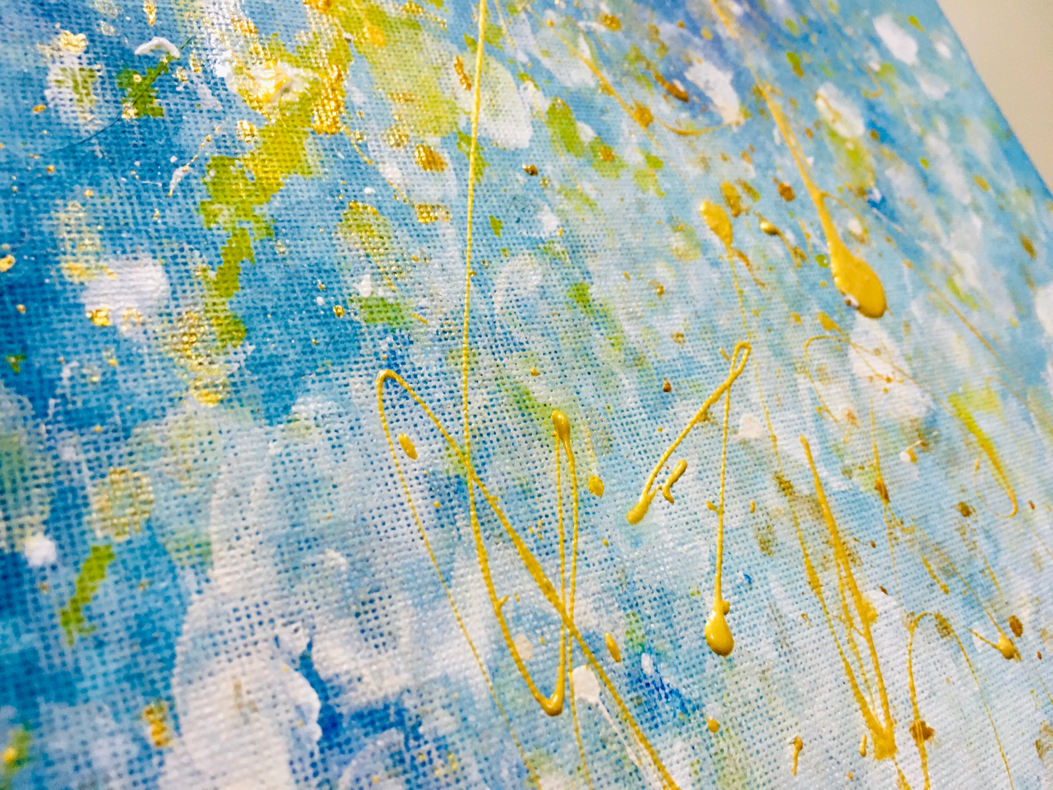 水に飛び込む勢いと泡、水を浴びるイメージで描きました。